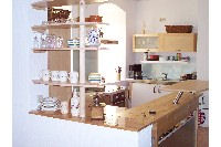 Küche - Ausblick von der Küche ins Wohnzimmer und Esszimmer - kitchen - view from the kitchen into the living room and dining room